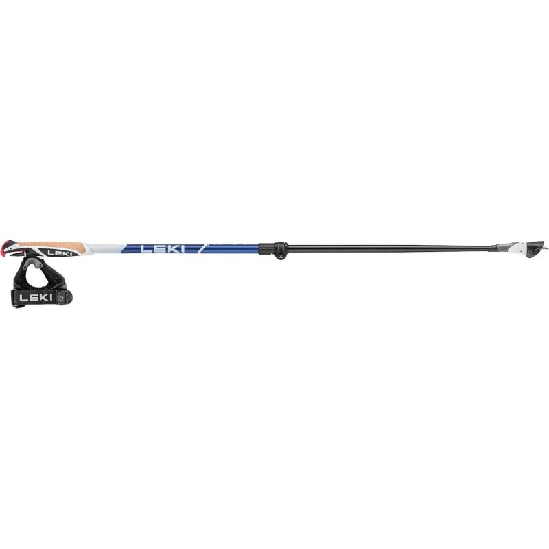 LEKI NW Smart Supreme blue to lekkie kije do nordic walking (225g), długość regulowana 100–130 cm. Wykonane z odpornego aluminium HTS 6.0. Szybka regulacja długości dzięki Speed Lock 2.0. System Smart Tip 2.0 umożliwia błyskawiczną wymianę końcówek bez narzędzi: gumowe lub karbidowe. Rękojeść z naturalnego korka, pasek Shark Active Strap – wygodne mocowanie i wypinanie Trigger Shark 2.0. Idealne na różne nawierzchnie, zapewnia komfort, wszechstronność i bezpieczeństwo.
